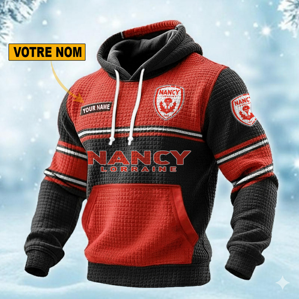 AS Nancy Lorraine – Pull hoodie gaufré Édition spéciale Avec Nom Personnalisé