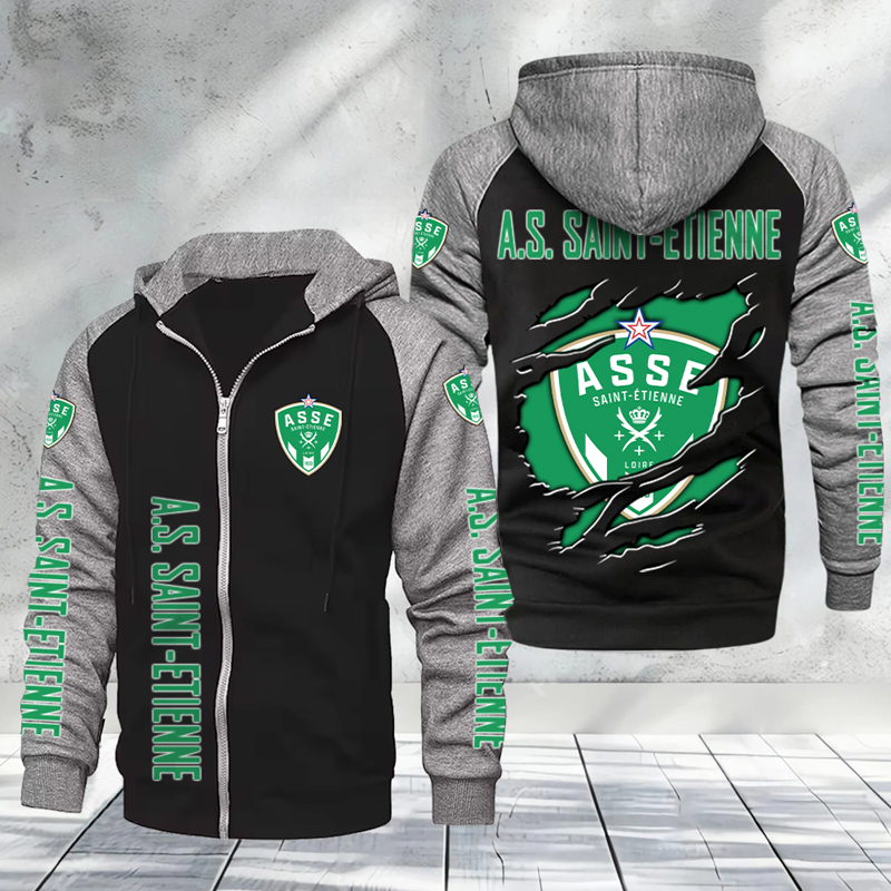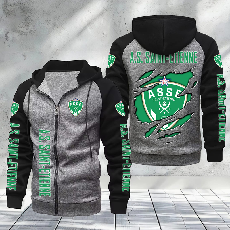 AS Saint-Étienne – Hoodie zippé raglan Nouveau Design Nouvelle édition