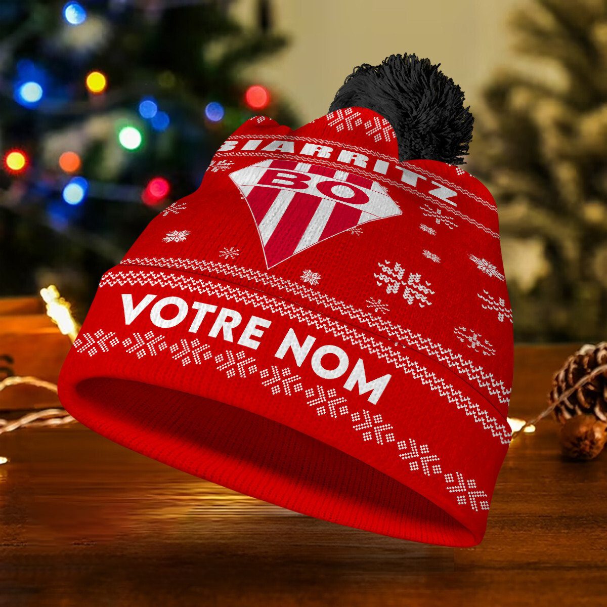 Biarritz Olympique PB – Bonnet de Noël Nouvelle Version avec nom personnalisé