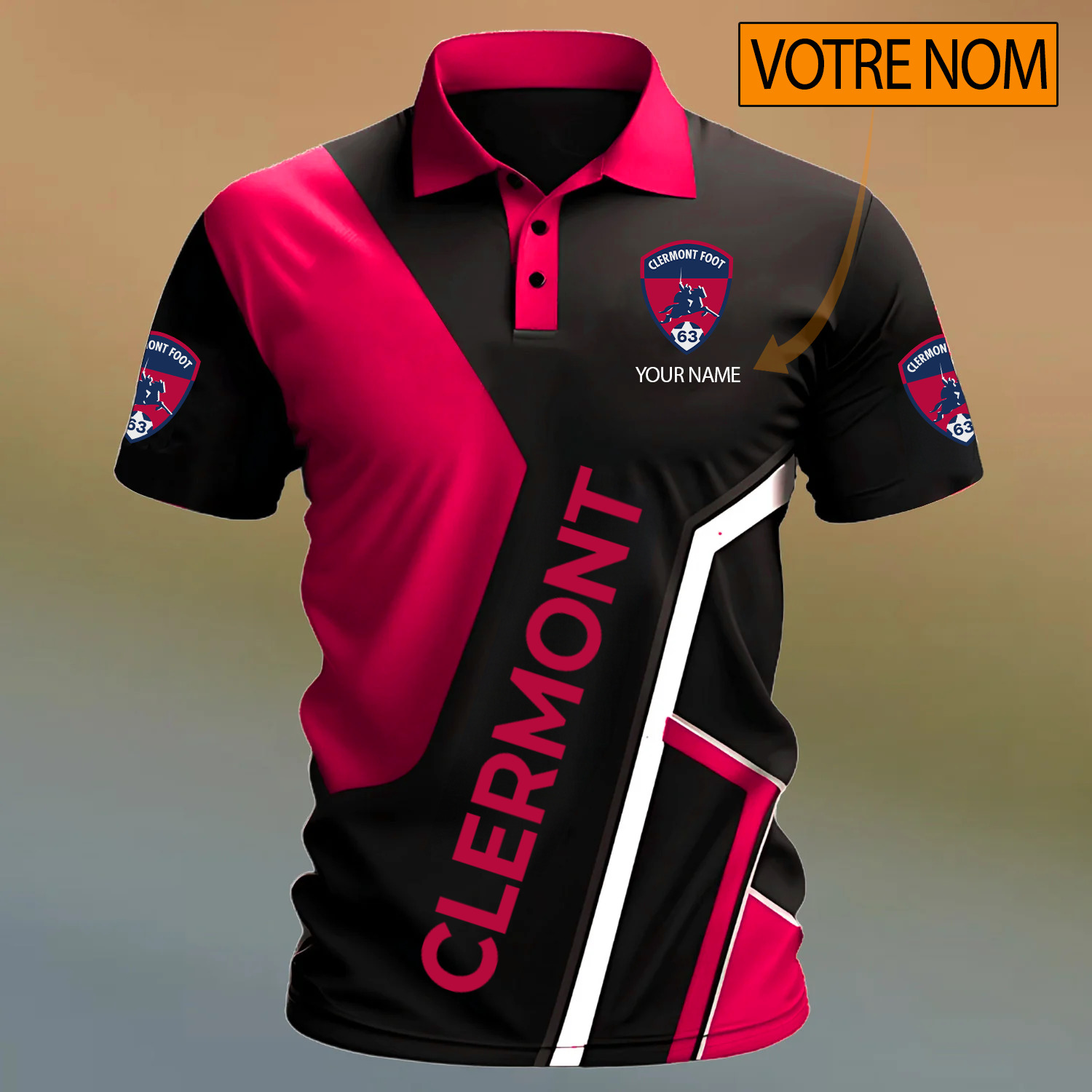 Clermont Foot 63 – Chemise polo Design Signature Avec Nom Personnalisé