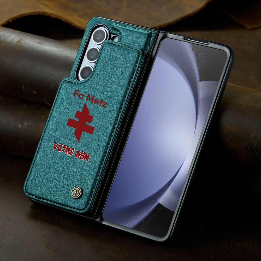 Étui en cuir pour téléphone FC Metz Nouvelle édition avec nom personnalisé