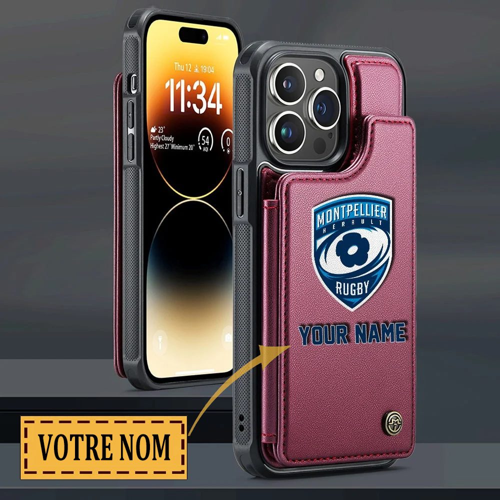 Étui en cuir pour téléphone Montpellier Hérault Rugby Nouvelle édition avec nom personnalisé