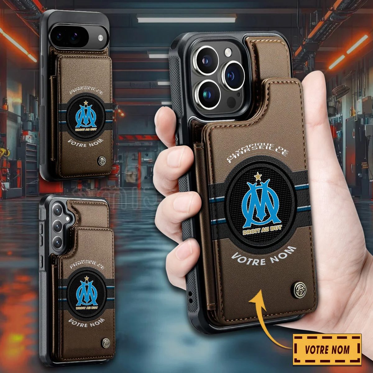 Étui en cuir pour téléphone Olympique de Marseille Style sportif avec nom personnalisé