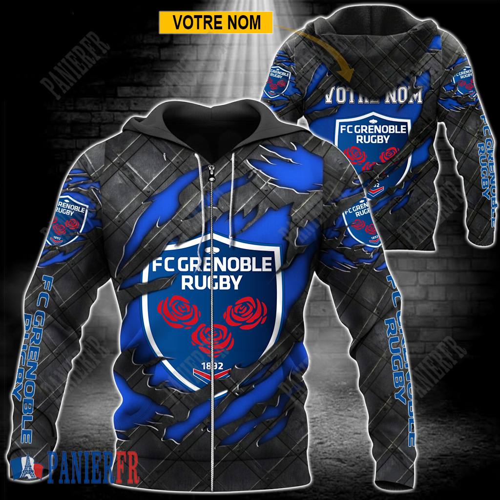 FC Grenoble Rugby – Veste à capuche zippée Édition spéciale Avec Nom Personnalisé