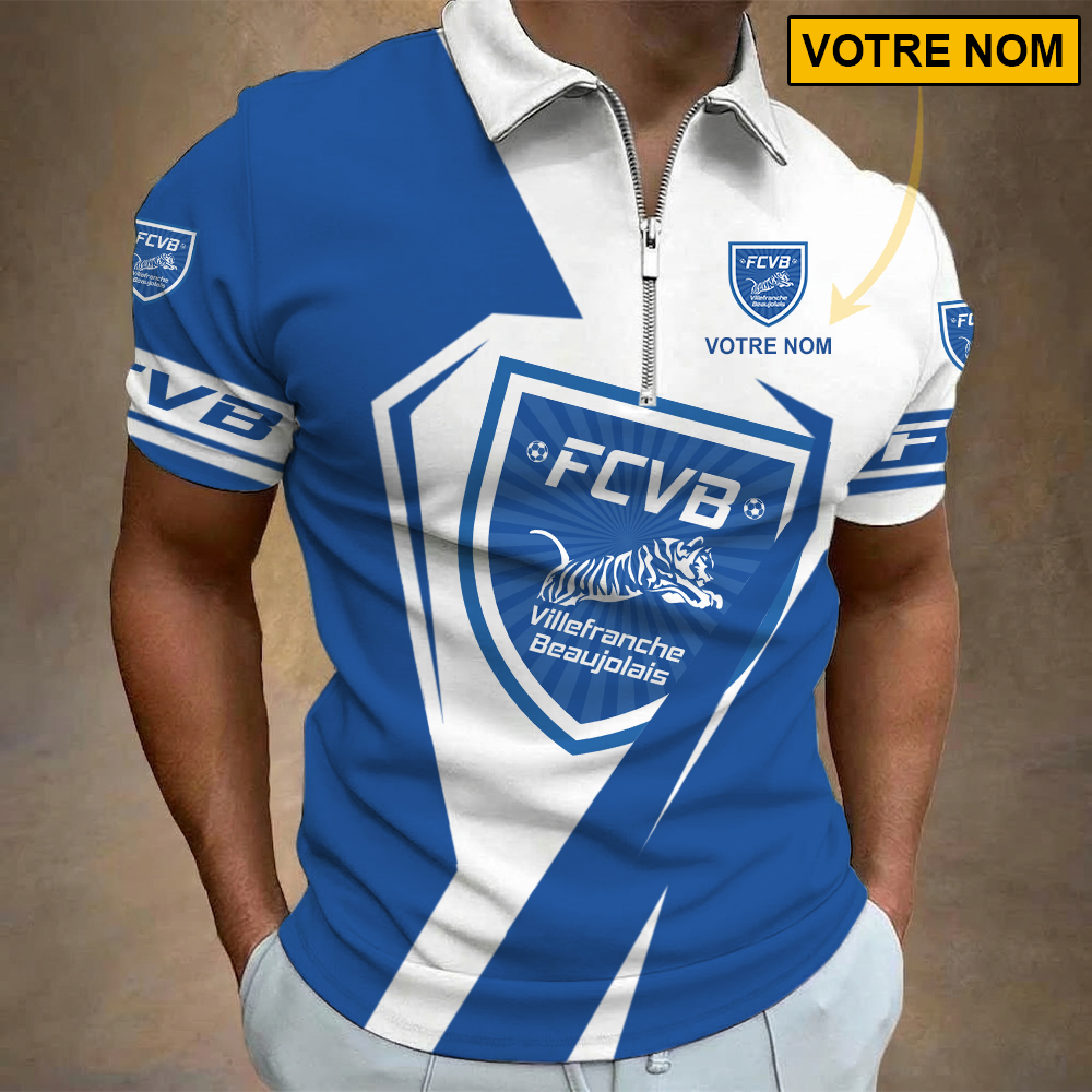 FC Villefranche-Beaujolais – Polo à fermeture éclair Nouveau style Avec Nom Personnalisé
