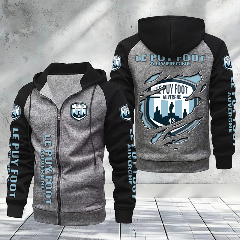 Le Puy Foot 43 Auvergne – Hoodie zippé raglan Nouveau Design Nouvelle édition