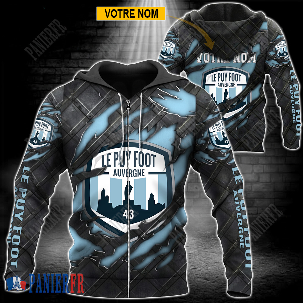 Le Puy Foot 43 Auvergne – Veste à capuche zippée Édition spéciale Avec Nom Personnalisé