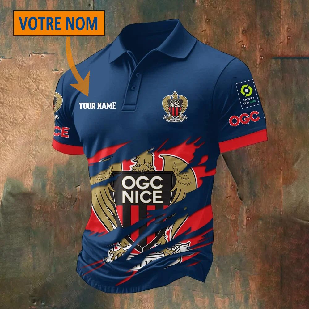 OGC Nice – Chemise polo Nouveau Style Avec Nom Personnalisé Caractéristiques du produit