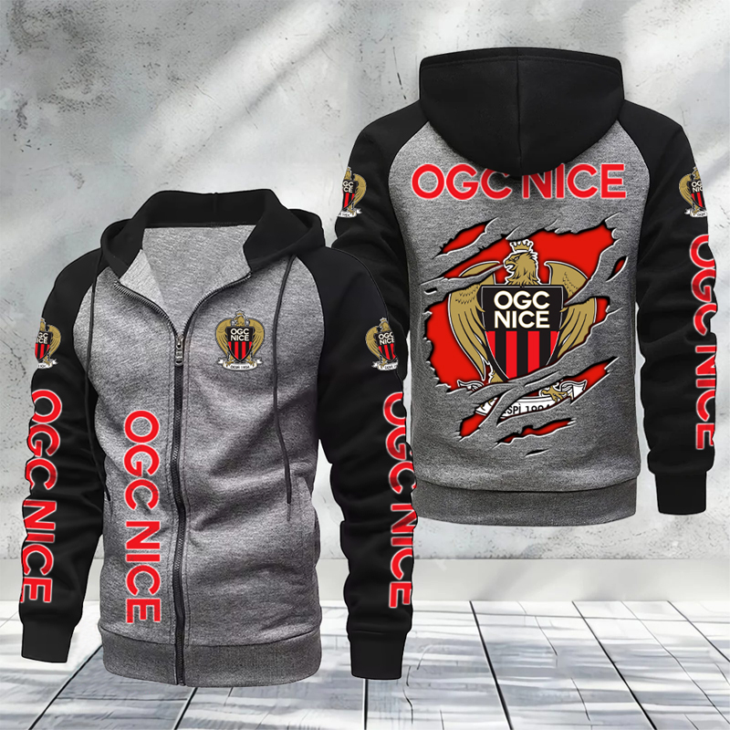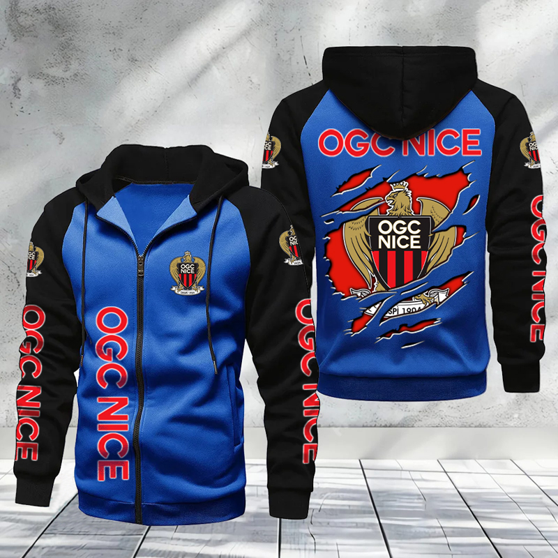OGC Nice – Hoodie zippé raglan Nouveau Design Nouvelle édition