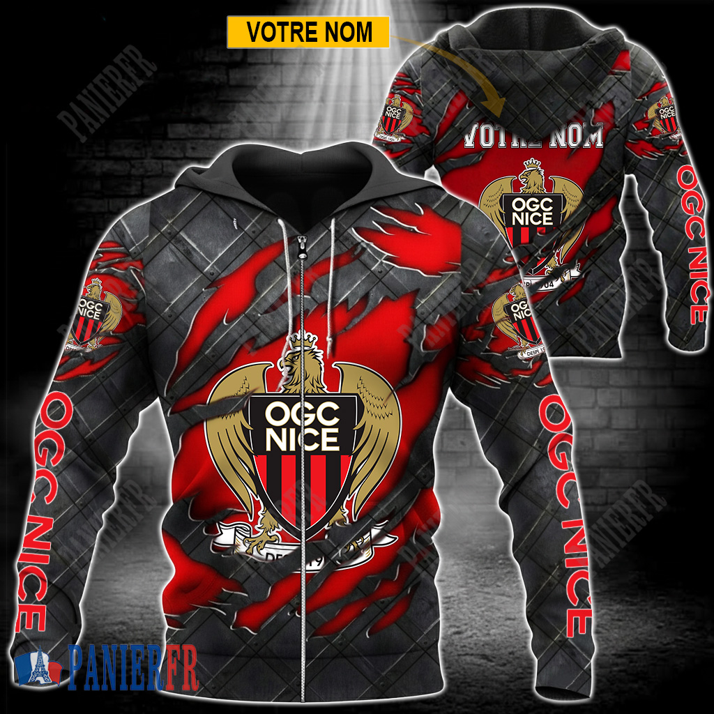 OGC Nice – Veste à capuche zippée Édition spéciale Avec Nom Personnalisé