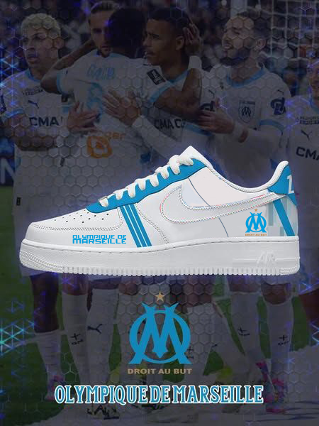 Ces chaussures présentent des graphismes nets de Olympique de Marseille, conçues pour les hommes et les femmes.