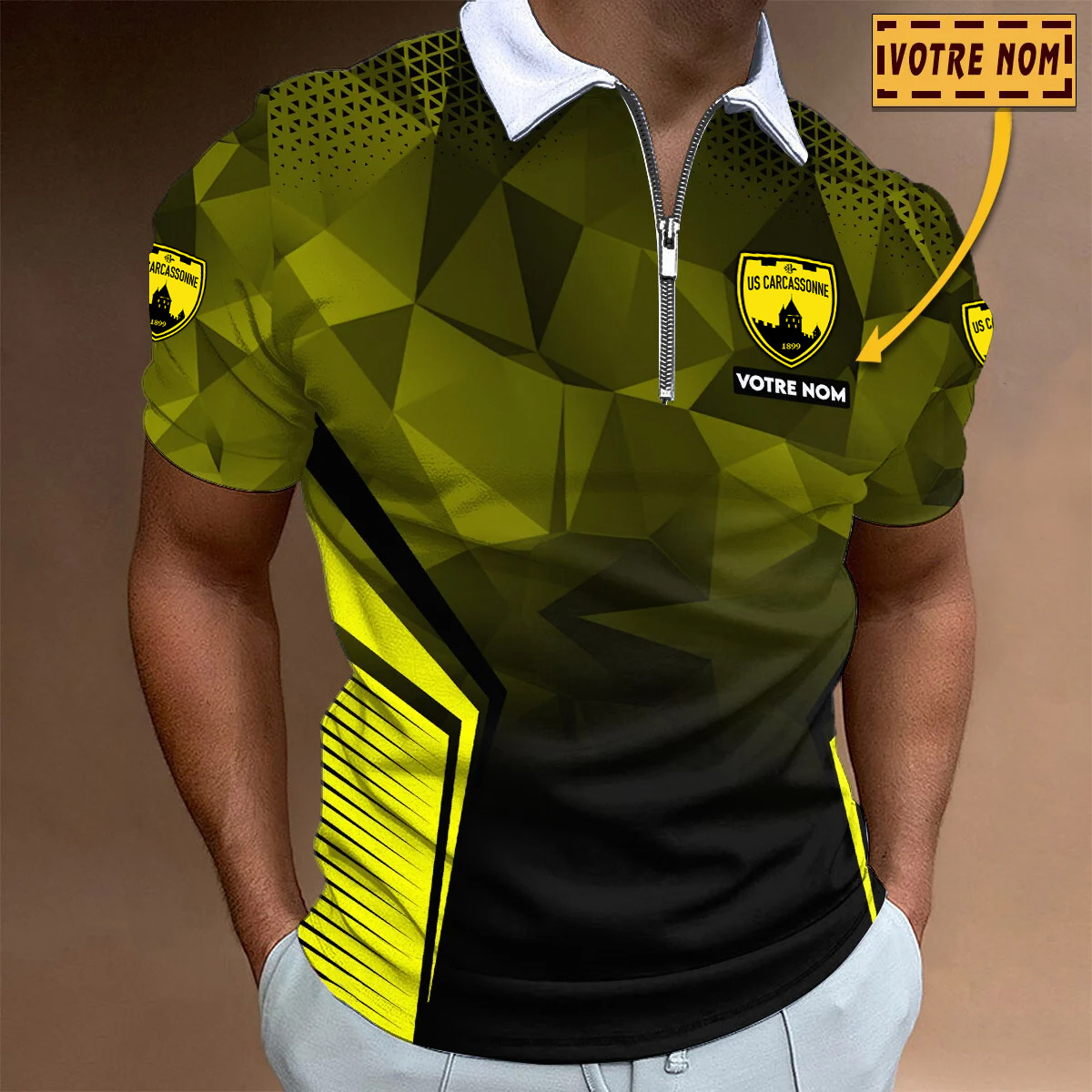 Polo à fermeture éclair – US Carcassonnaise nouvelle version avec nom personnalisé