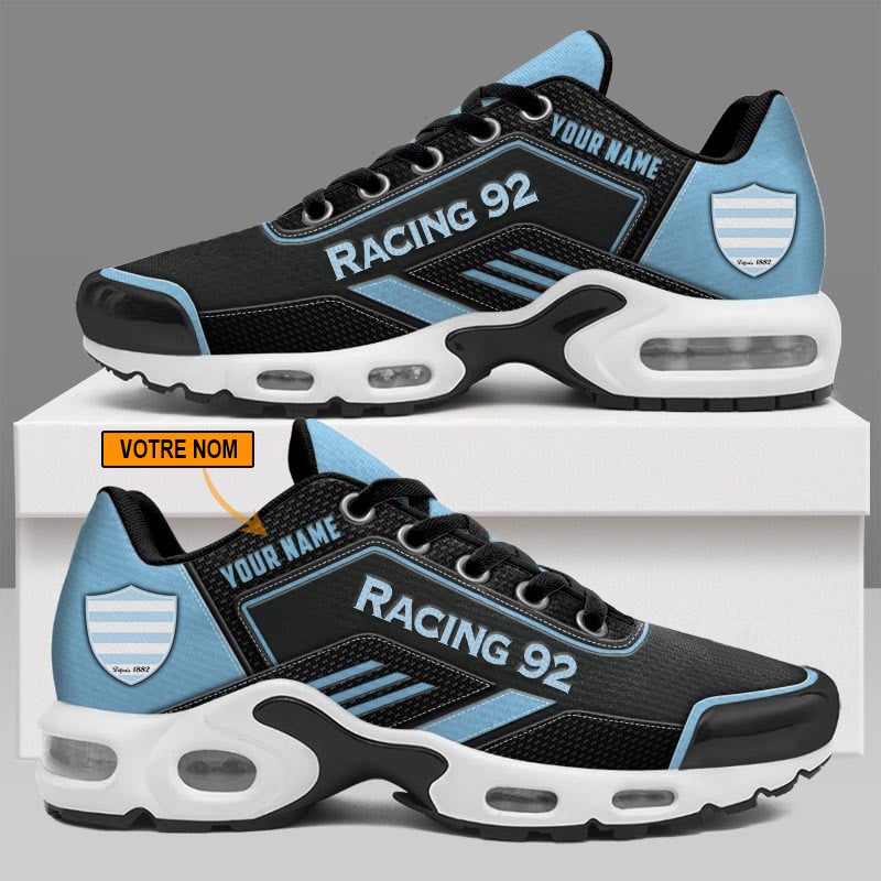 Ces chaussures présentent des graphismes clairs Racing 92 et sont conçues pour les hommes et les femmes.