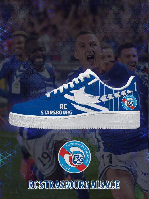 Ces chaussures présentent des graphismes nets de RC Strasbourg Alsace, conçues pour les hommes et les femmes.