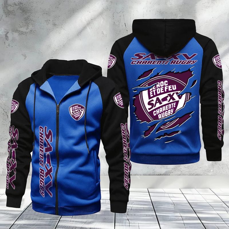 En plus de ses graphismes Soyaux-Angoulême XV, ce sweat à capuche zippé confortable est doté d'un matériau mi-lourd et ultra-doux.