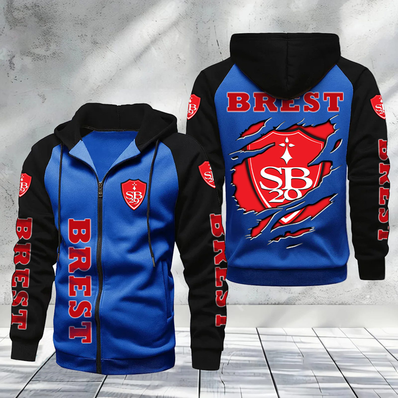 En plus de ses graphismes Stade Brestois 29, ce sweat à capuche zippé confortable est doté d'un matériau mi-lourd et ultra-doux.