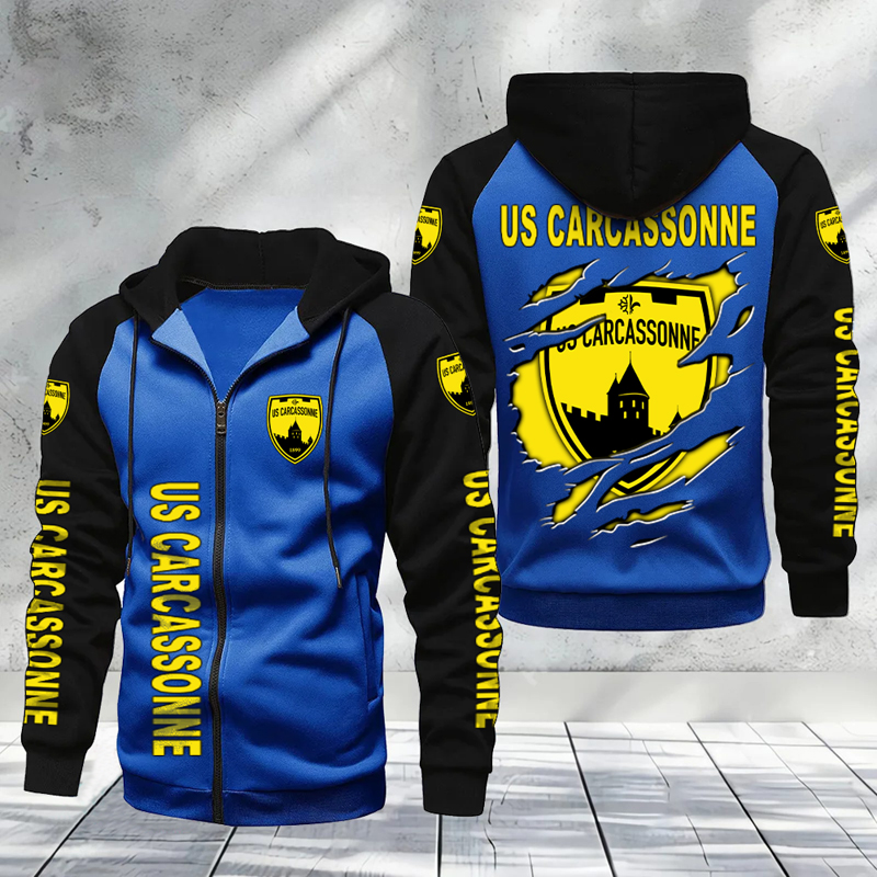 En plus de ses graphismes US Carcassonnaise, ce sweat à capuche zippé confortable est doté d'un matériau mi-lourd et ultra-doux.