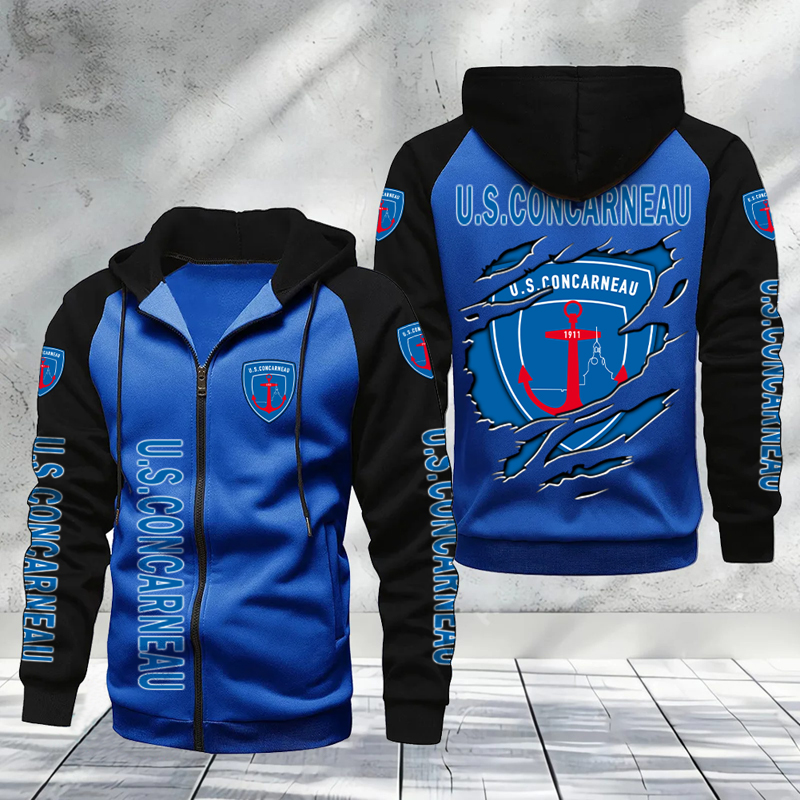 En plus de ses graphismes US Concarneau, ce sweat à capuche zippé confortable est doté d'un matériau mi-lourd et ultra-doux.