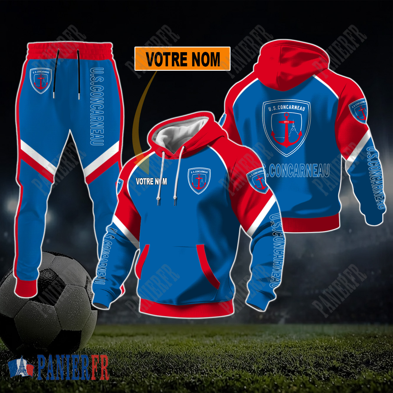 US Concarneau – Sweat à capuche et pantalon Nouvelle édition Avec Nom Personnalisé