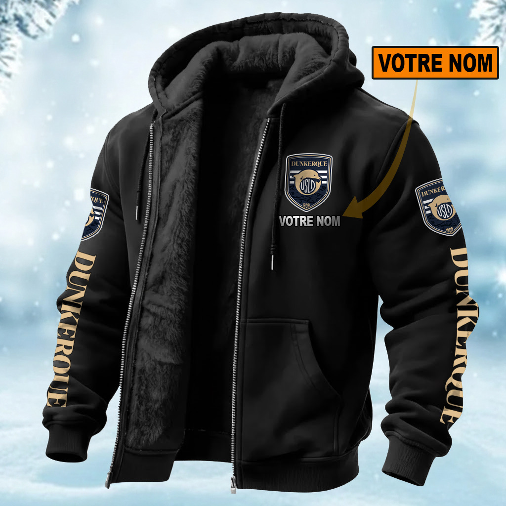 USL Dunkerque – Hoodie doublé en polaire Édition Limitée Avec Nom Personnalisé