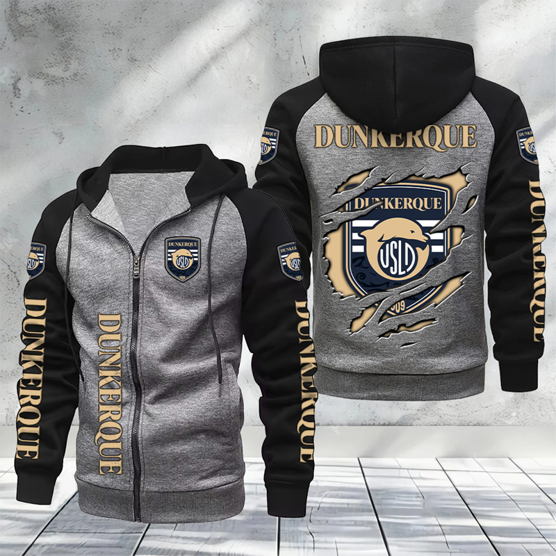 En plus de ses graphismes USL Dunkerque, ce sweat à capuche zippé confortable est doté d'un matériau mi-lourd et ultra-doux.