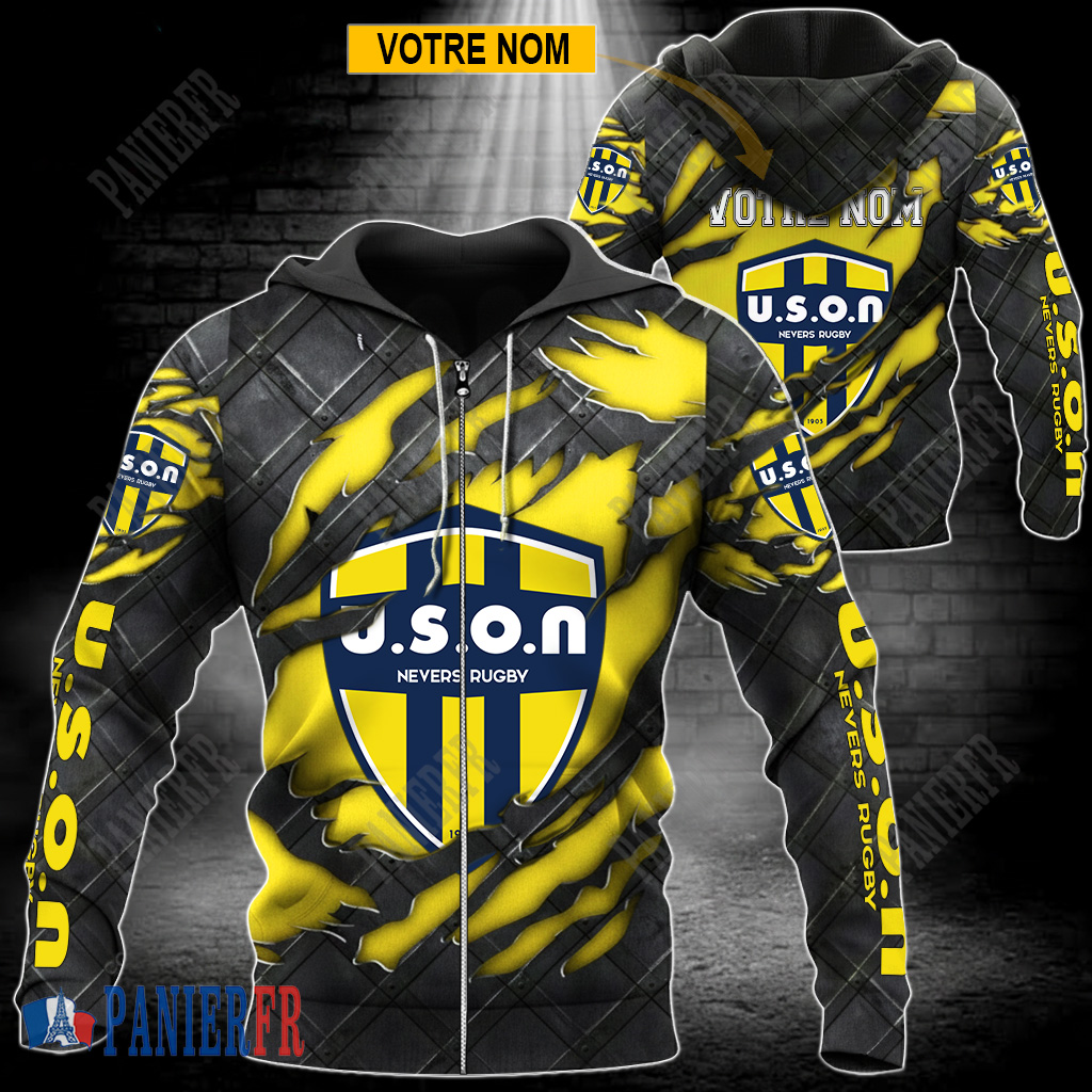 USON Nevers – Veste à capuche zippée Édition spéciale Avec Nom Personnalisé